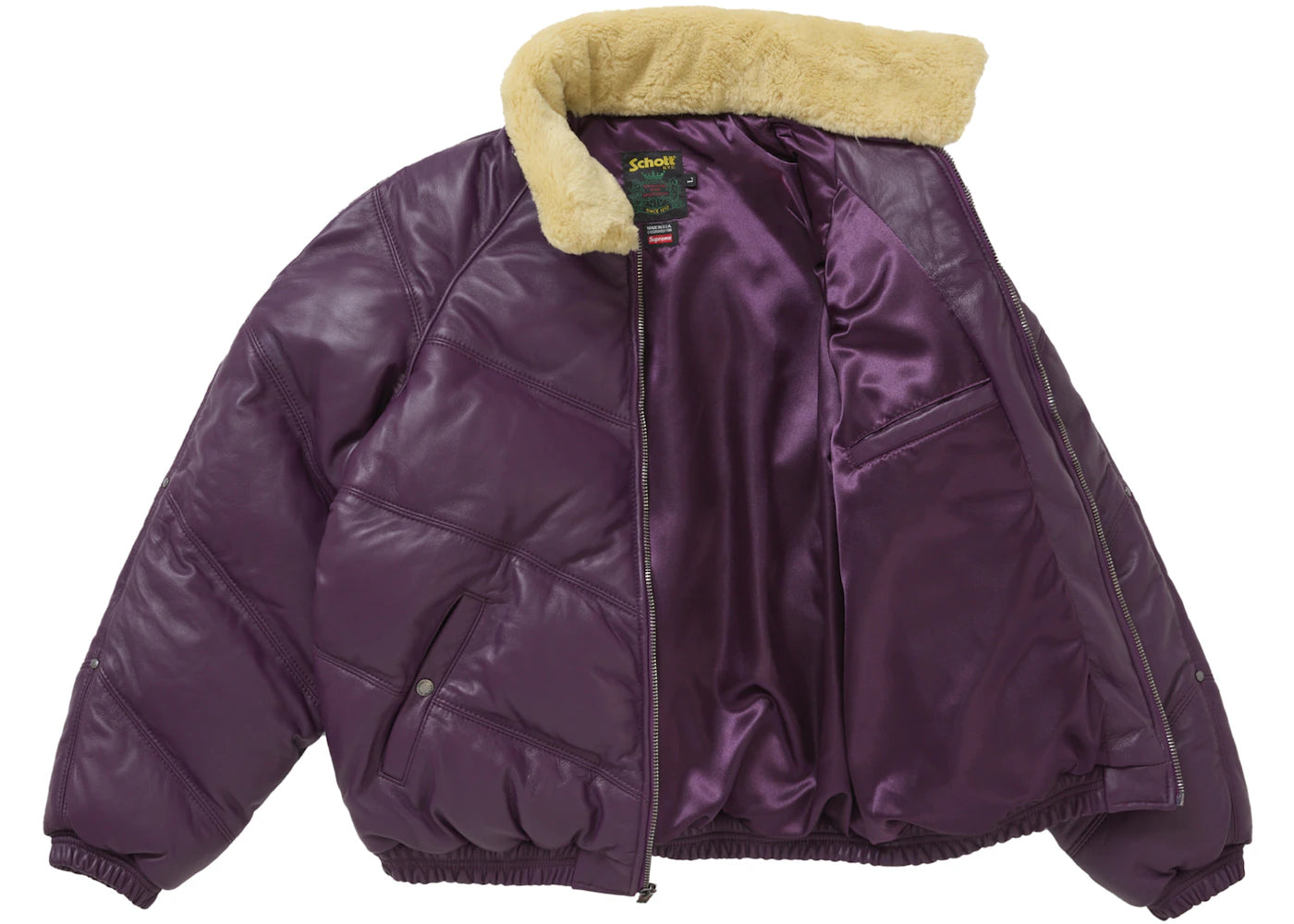 Supreme Schott Chevron Leather Down Puffer Jacket Purple