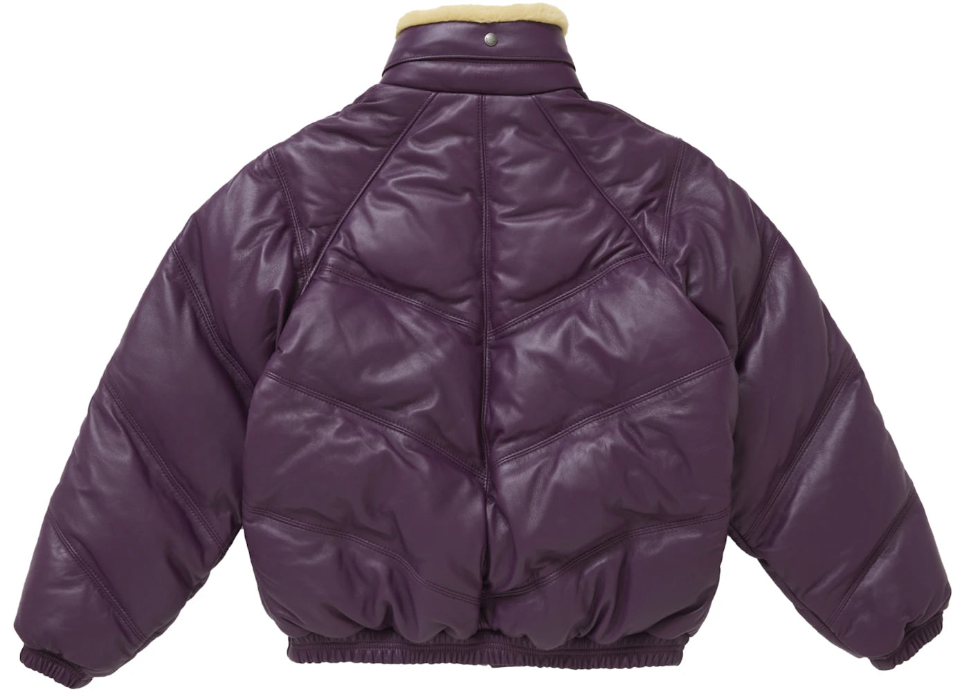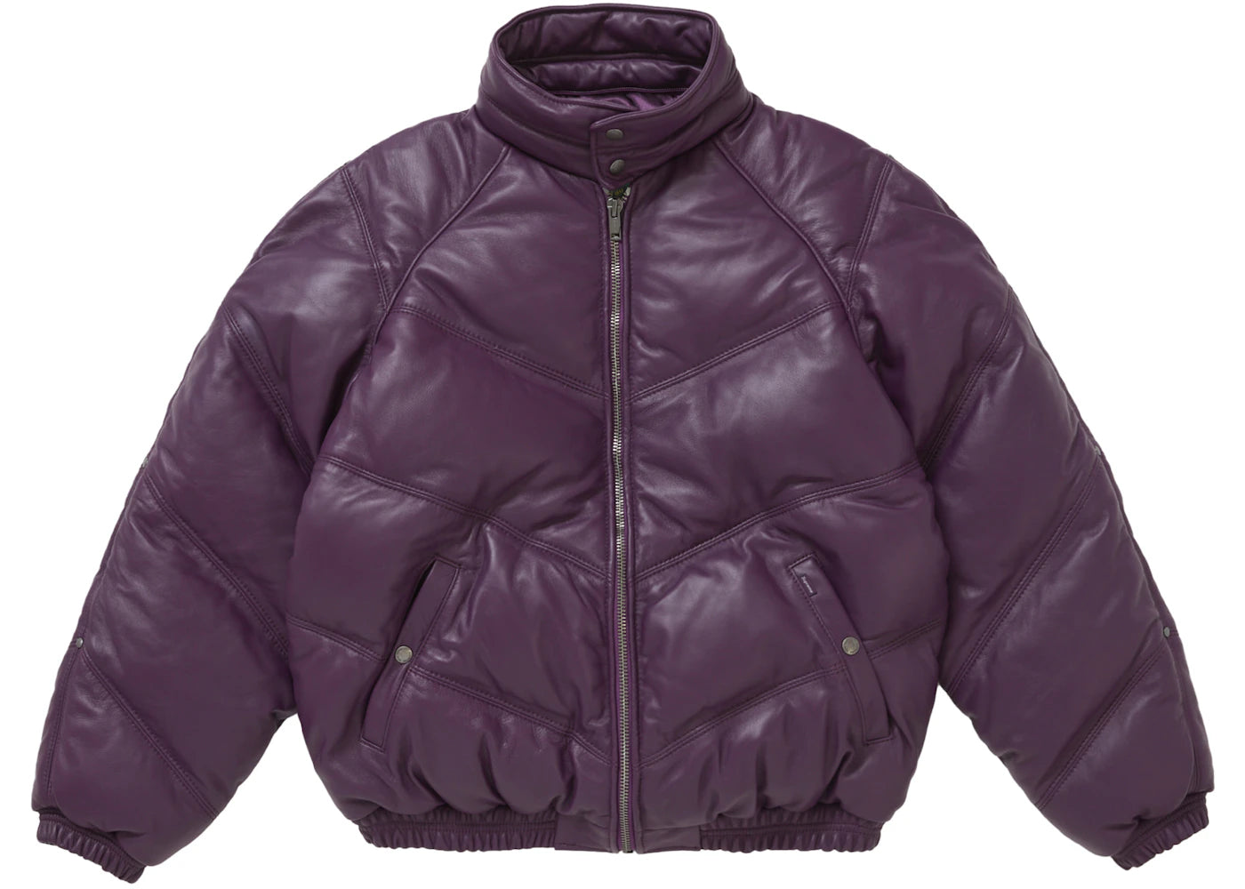 The Supreme Schott Chevron Leather Down Puffer Jacket Purple is now available at Side Kicks!