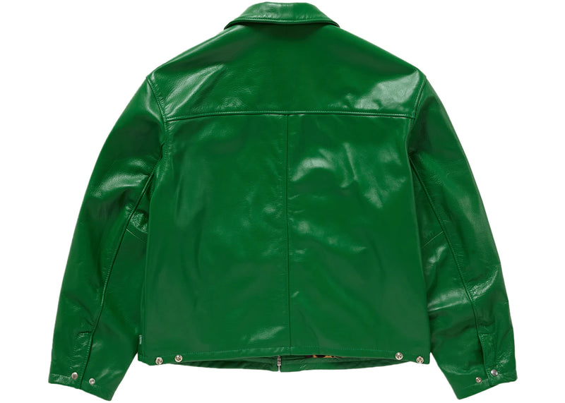 The Supreme Schott Leather Racer Jacket (FW24) Green is now available at Side Kicks!