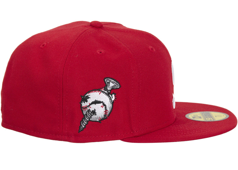 The Supreme Screw Ball S Logo New Era 59Fifty Fitted Hat Red is now available at Side Kicks!