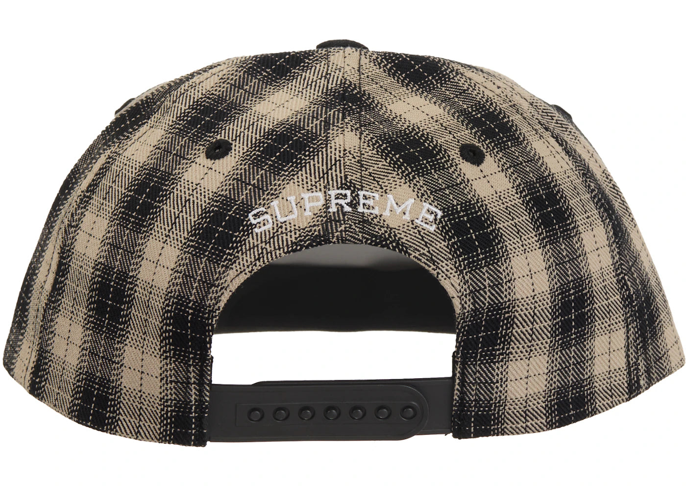 Supreme Script Logo 6-Panel Cap (SS24) Black Plaid