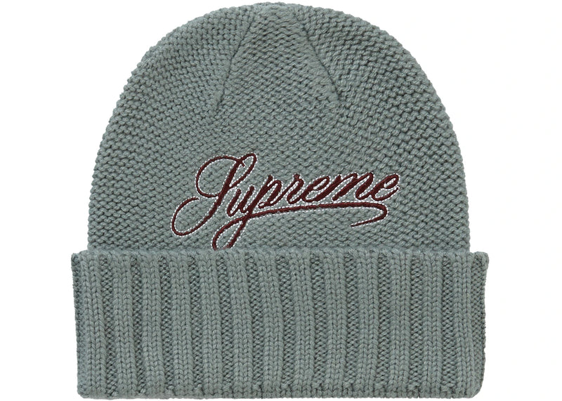 The Supreme Script Logo Beanie Olive is now available at Side Kicks!