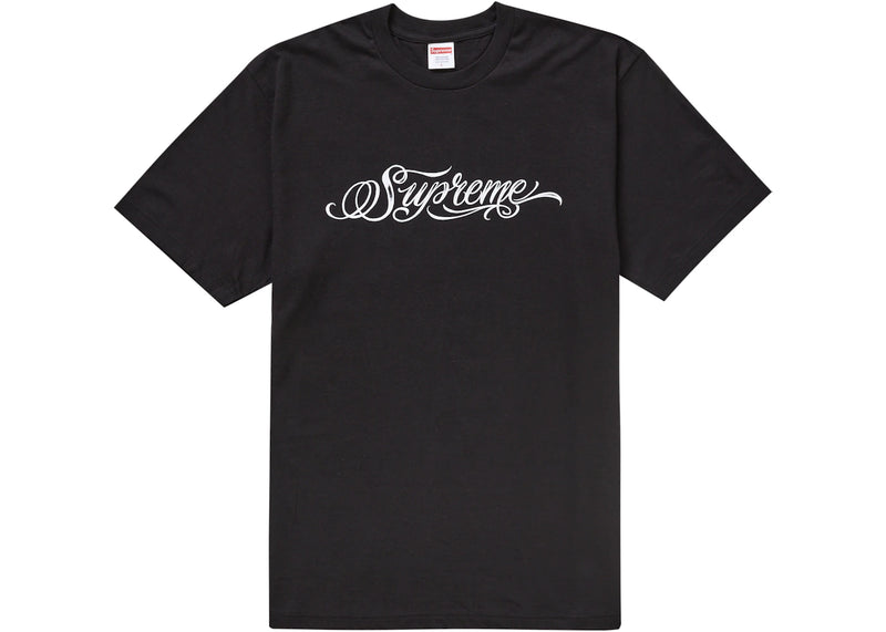 The Supreme Script Tee Black is now available at Side Kicks!