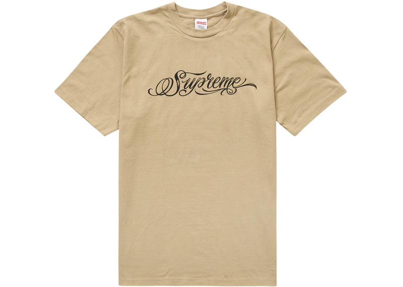The Supreme Script Tee Khaki is now available at Side Kicks!