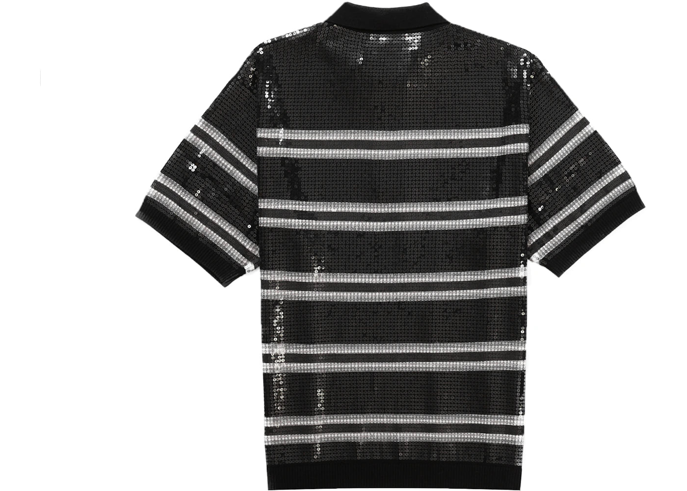 The Supreme Sequin Stripe Zip Polo Black is now available at Side Kicks!