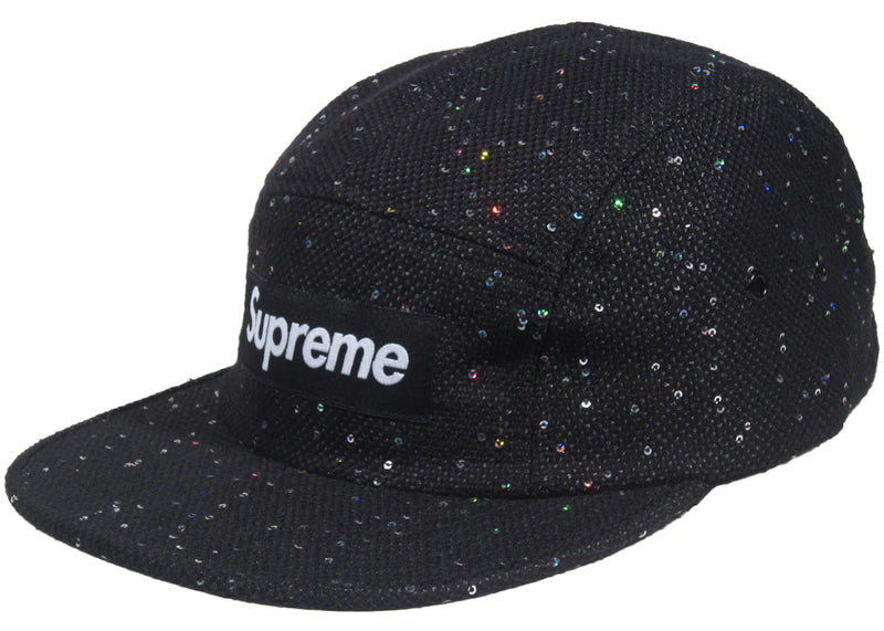 The Supreme Sequins Camp Cap Black is now available at Side Kicks!