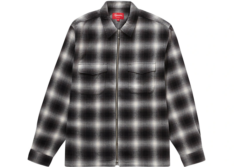 The Supreme Shadow Plaid Flannel Zip Up Shirt Black is now available at Side Kicks!