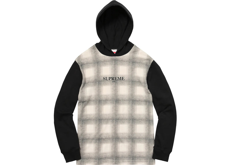 The Supreme Shadow Plaid Hooded L/S Top Black is now available at Side Kicks!
