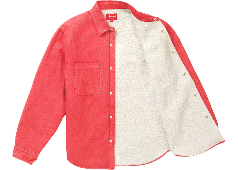 The Supreme Sherpa Lined Denim Shirt Red is now available at Side Kicks!