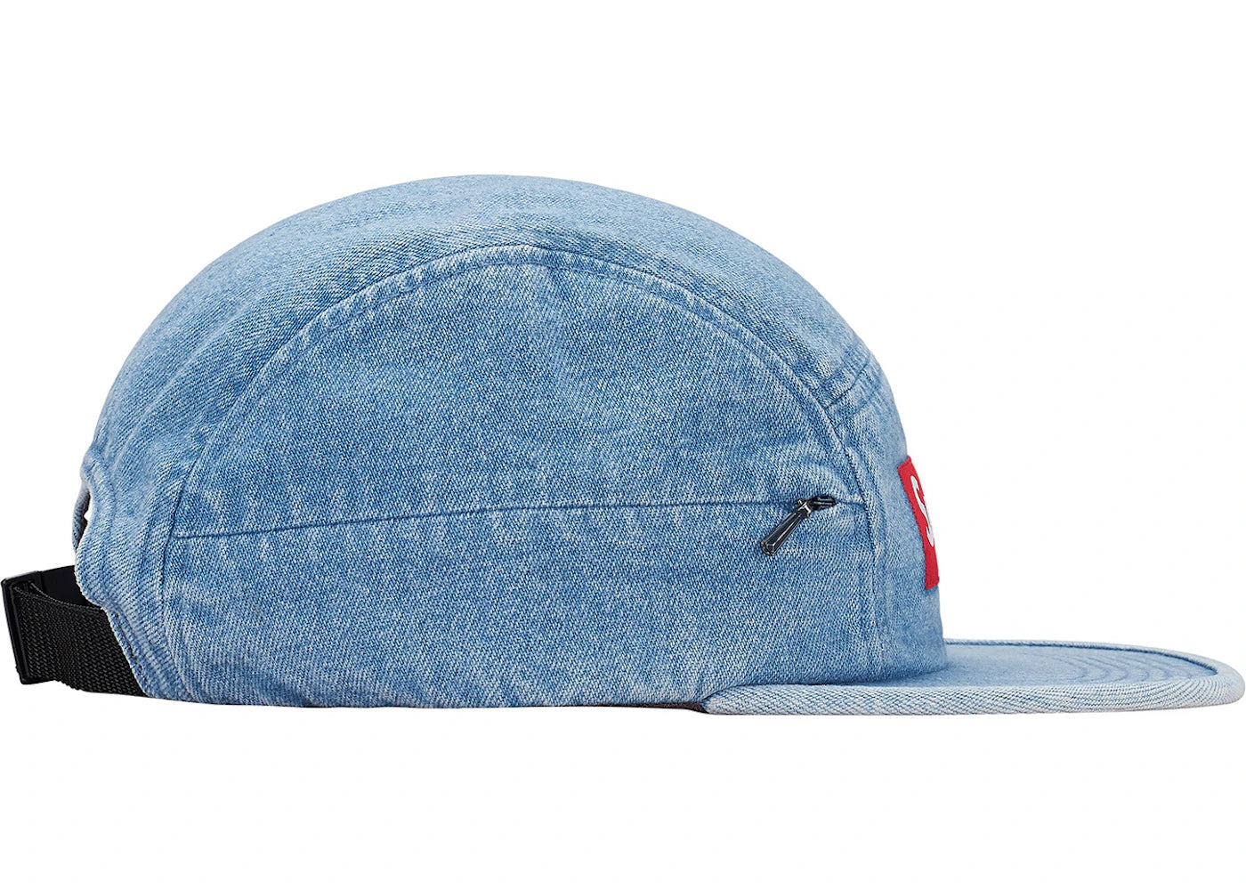 The Supreme Side Zip Camp Cap Denim is now available at Side Kicks!