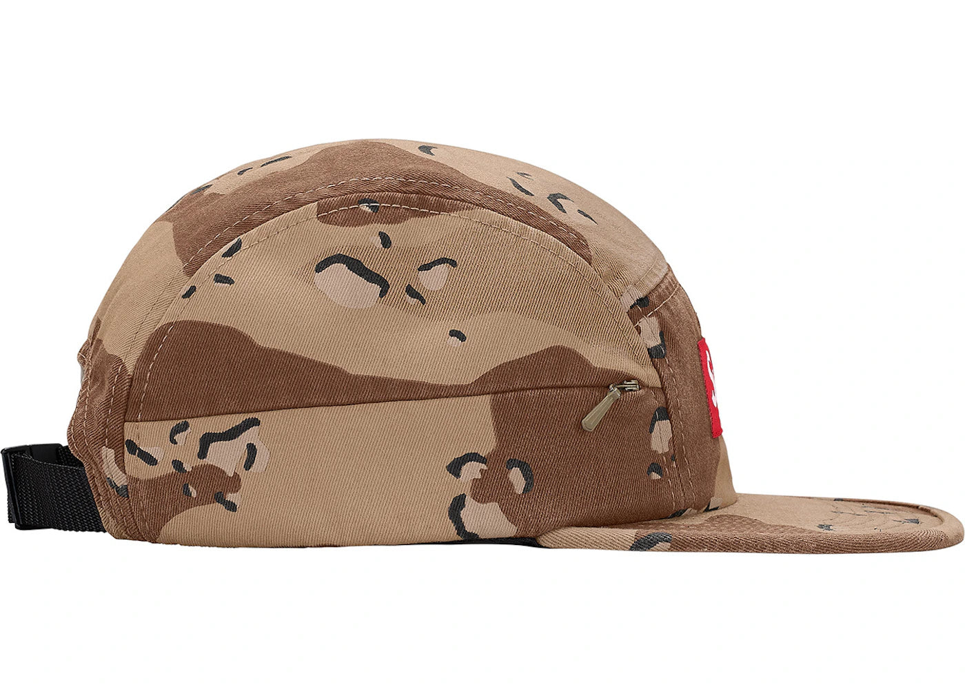 The Supreme Side Zip Camp Cap Desert Camo is now available at Side Kicks!