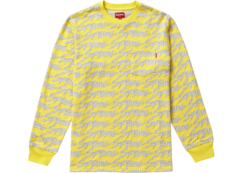 The Supreme Signature Script Logo L/S Pocket Tee Yellow is now available at Side Kicks!