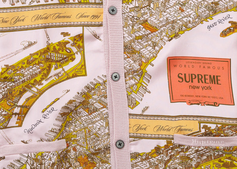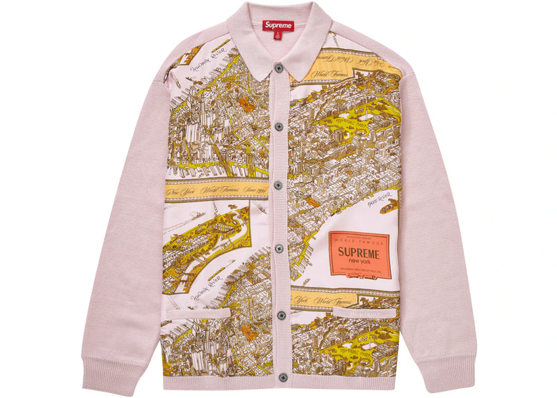 The Supreme Silk Map Cardigan Pink is now available at Side Kicks!