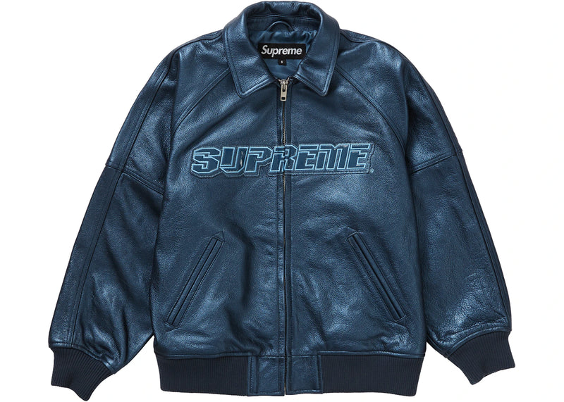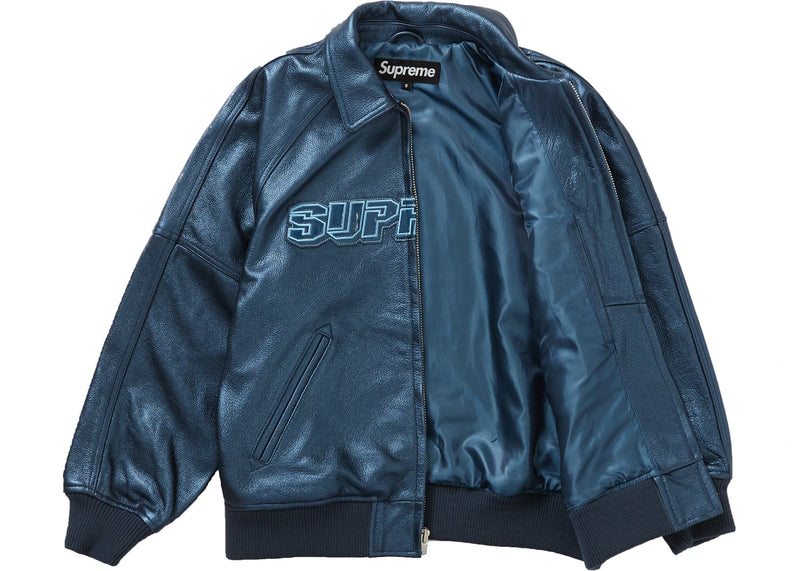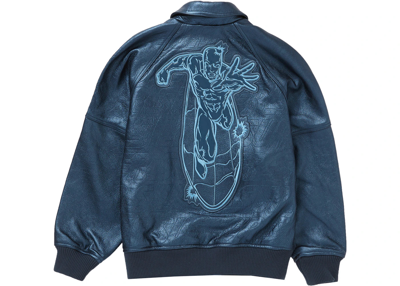 Supreme Silver Surfer Leather Varsity Jacket Blue