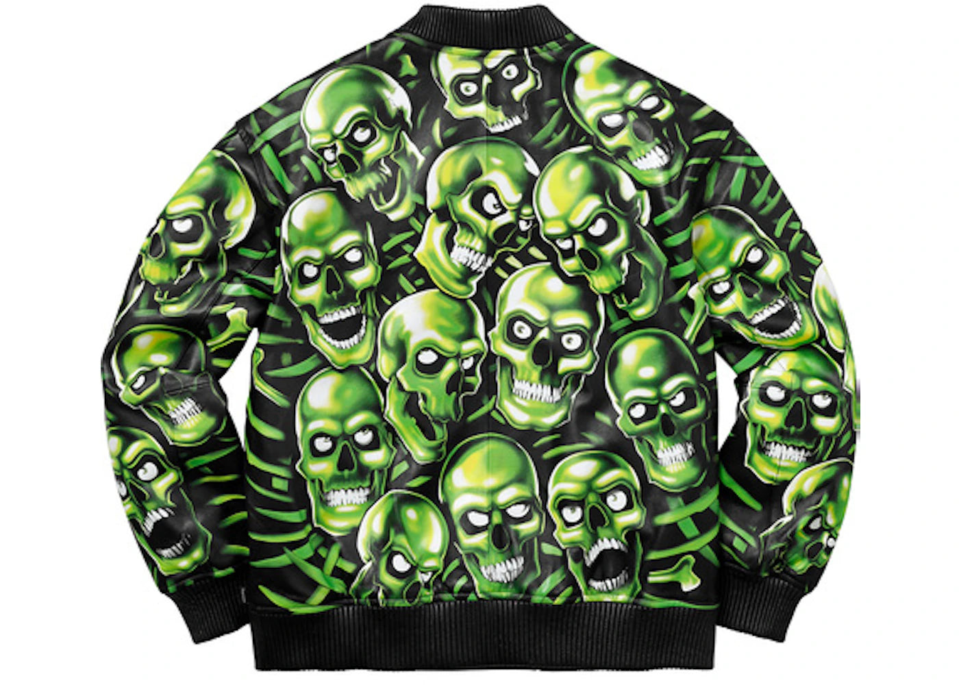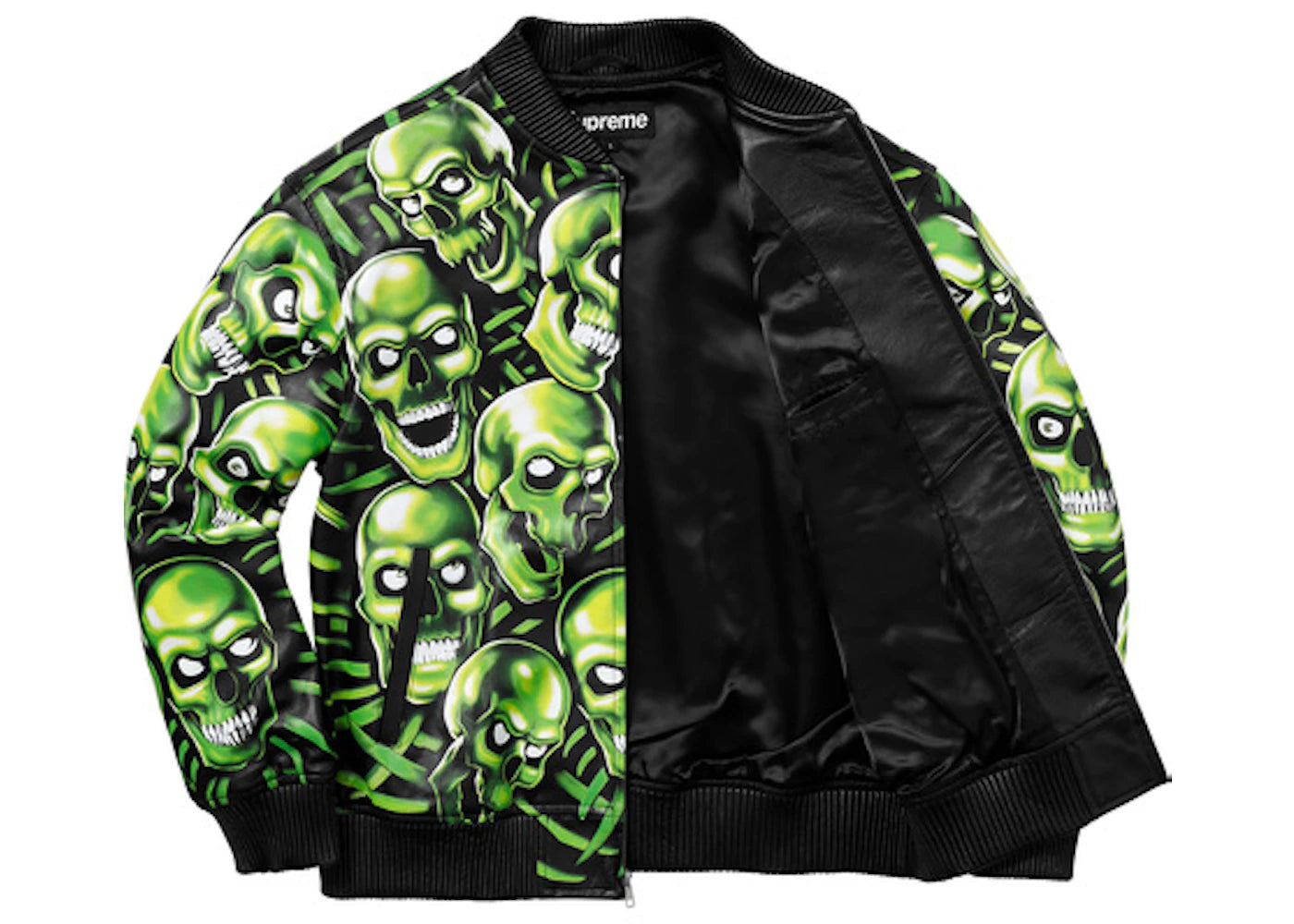 The Supreme Skull Pile Leather Bomber Jacket Green is now available at Side Kicks!