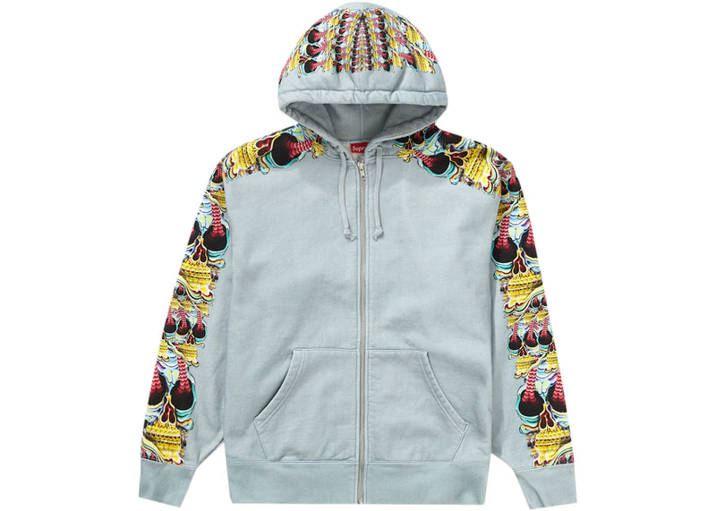Supreme Skulls Zip Up Hooded Sweatshirt Light Slate