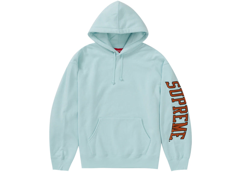 The Supreme Sleeve Arc Hooded Sweatshirt (FW23) Pale Blue is now available at Side Kicks!