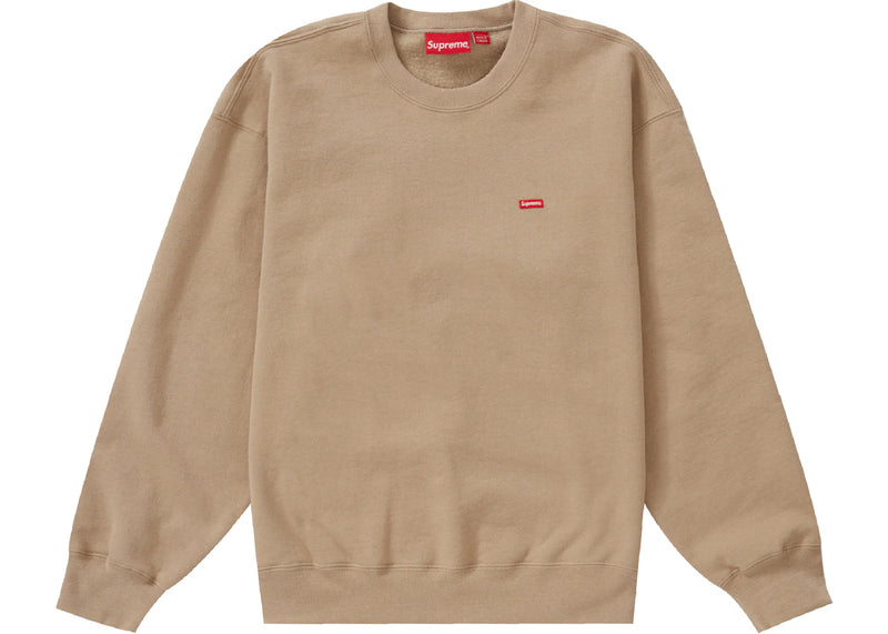 The Supreme Small Box Crewneck Tan is now available at Side Kicks!