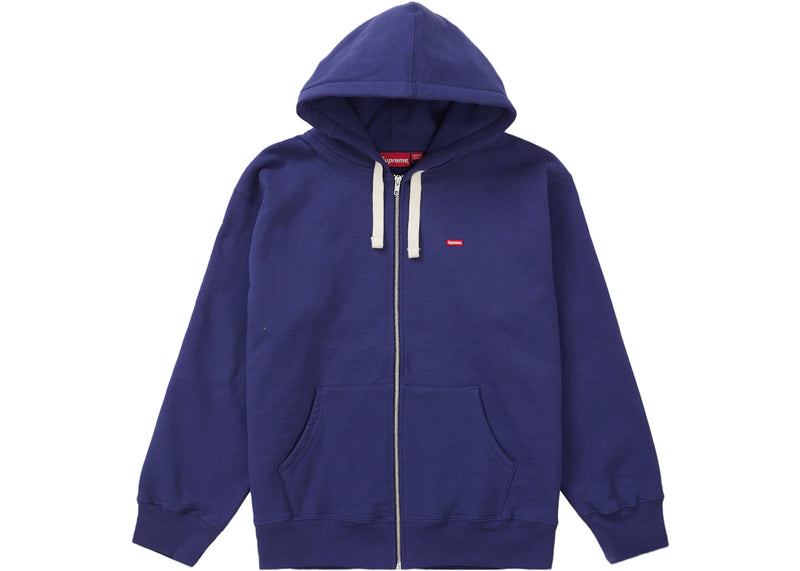 The Supreme Small Box Drawcord Zip Up Hooded Sweatshirt Washed Navy is now available at Side Kicks!