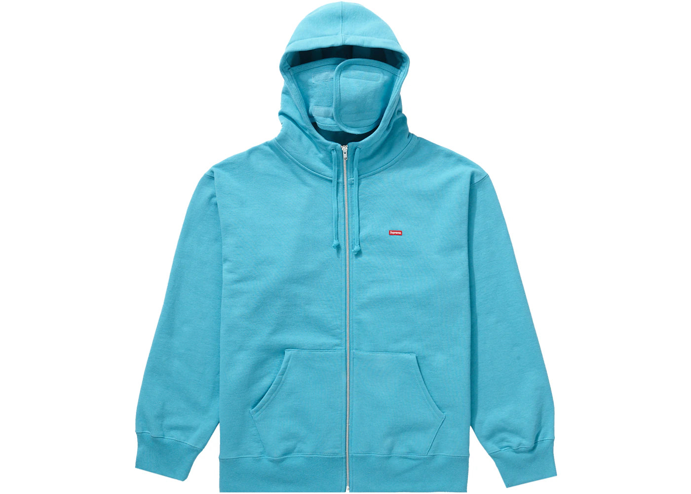 The Supreme Small Box Facemask Zip Up Hooded Sweatshirt (FW21) Cyan is now available at Side Kicks!