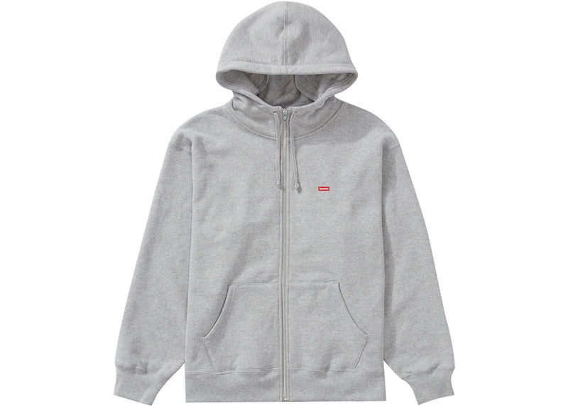 The Supreme Small Box Facemask Zip Up Hooded Sweatshirt (FW21) Heather Grey is now available at Side Kicks!