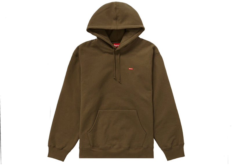 The Supreme Small Box Hooded Sweatshirt (SS22) Olive Brown is now available at Side Kicks!