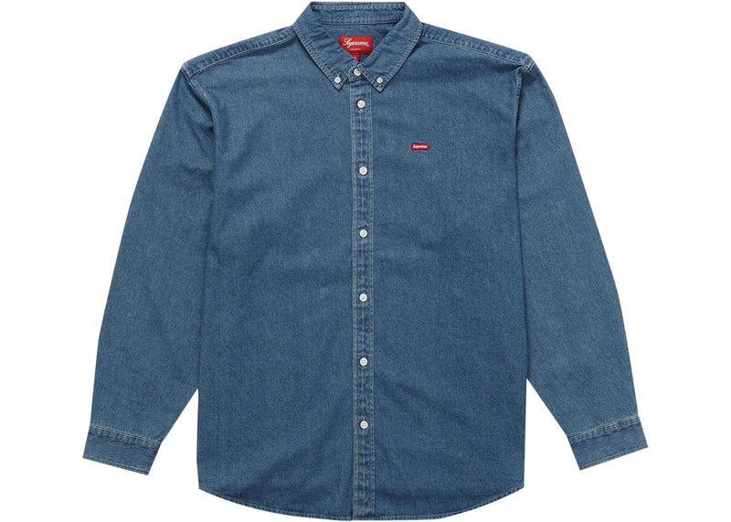 The Supreme Small Box Twill Shirt Denim is now available at Side Kicks!