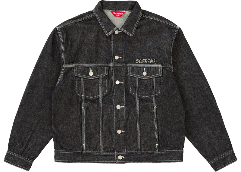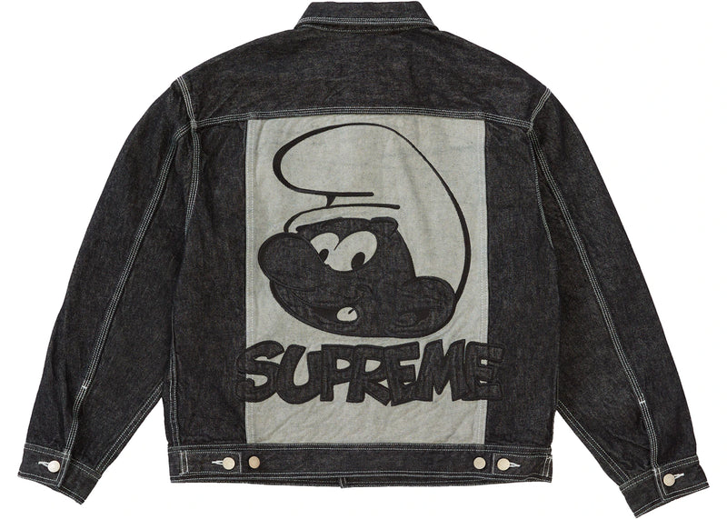 The Supreme Smurfs Denim Trucker Jacket Black is now available at Side Kicks!