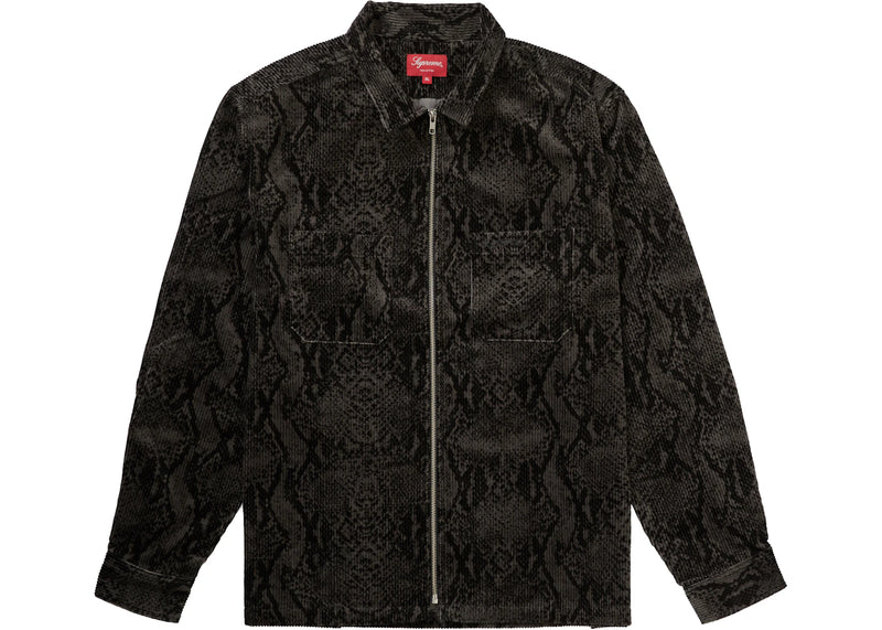 The Supreme Snakeskin Corduroy Zip Up Shirt Black is now available at Side Kicks!