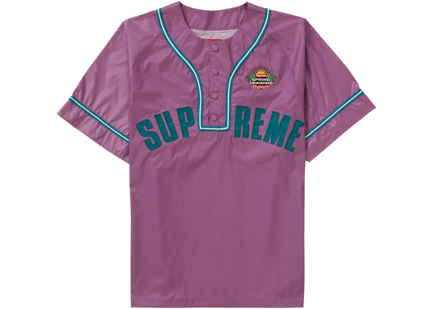 The Supreme Snap-Off Sleeve L/S Baseball Top Purple is now available at Side Kicks!