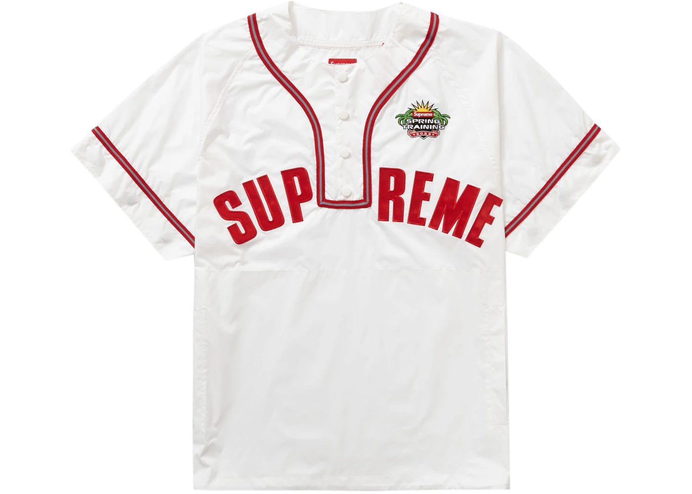 The Supreme Snap-Off Sleeve L/S Baseball Top White is now available at Side Kicks!