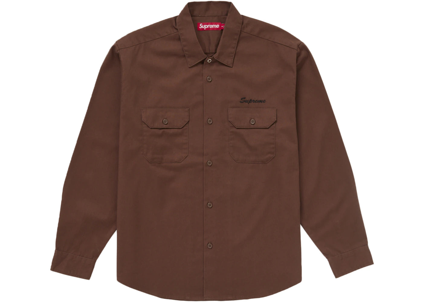 The Supreme Snow White Work Shirt Brown is now available at Side Kicks!
