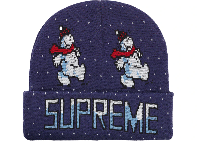 The Supreme Snowman Beanie Light Navy is now available at Side Kicks!