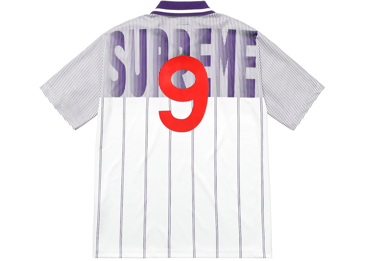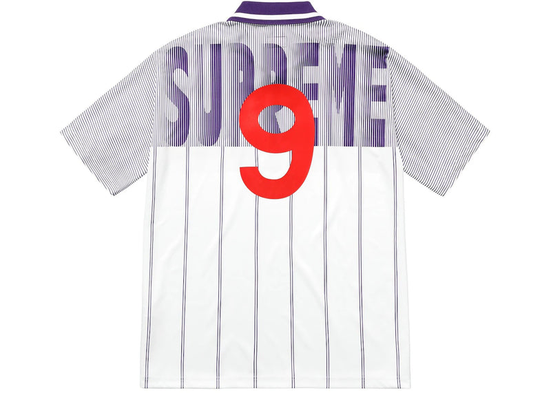 The Supreme Soccer Polo White is now available at Side Kicks!