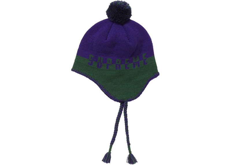 The Supreme Split Logo Earflap Beanie Green is now available at Side Kicks!