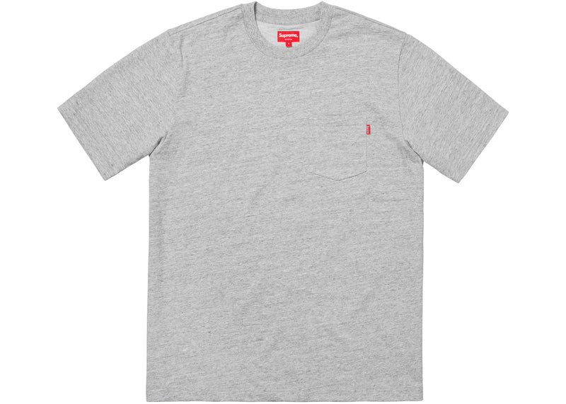 The Supreme SS Pocket Tee (FW18) Heather Grey is now available at Side Kicks!