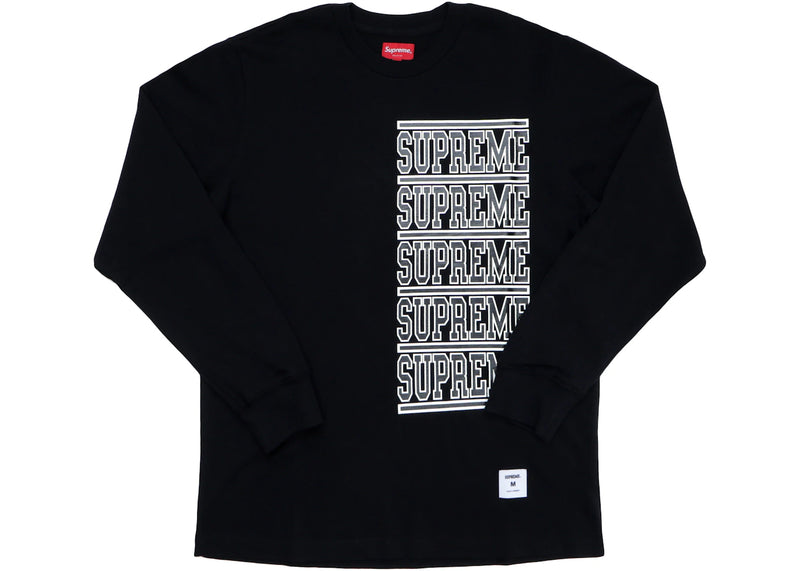 The Supreme Stacked L/S Top Black is now available at Side Kicks!