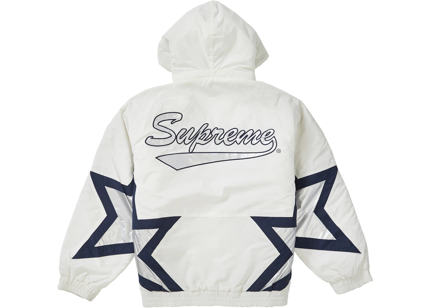 The Supreme Stars Puffy Jacket White is now available at Side Kicks!