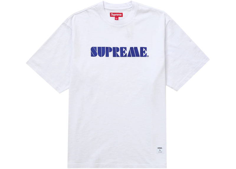 The Supreme Stencil Embroidered S/S Top White is now available at Side Kicks!
