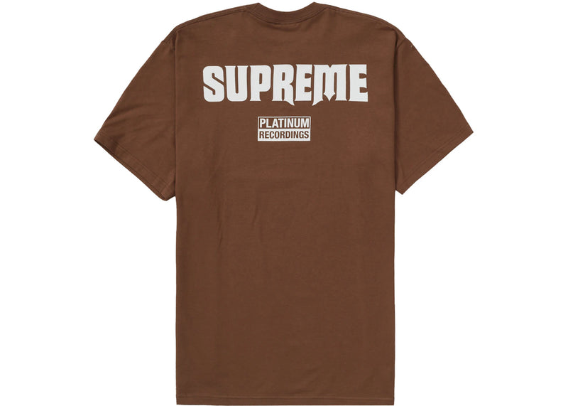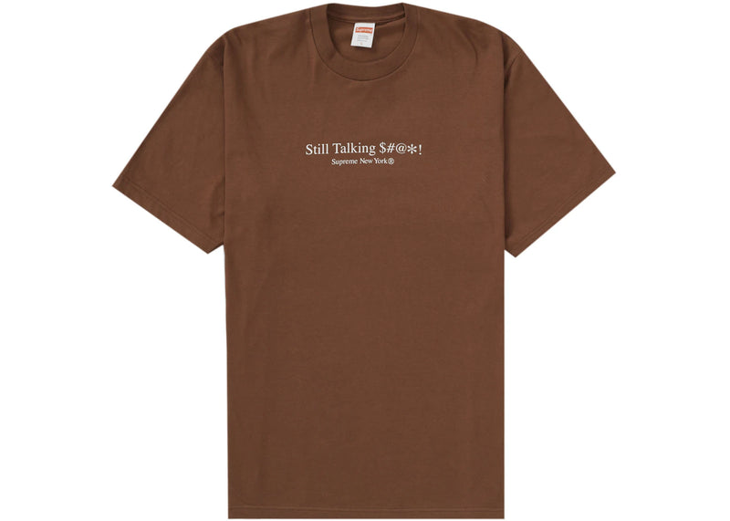 The Supreme Still Talking Tee Brown is now available at Side Kicks!