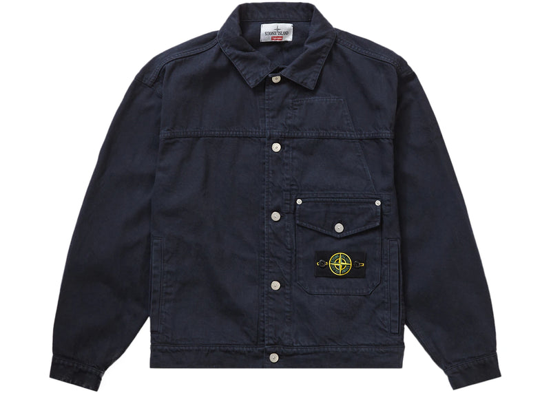 The Supreme Stone Island Denim Trucker Jacket Navy is now available at Side Kicks!