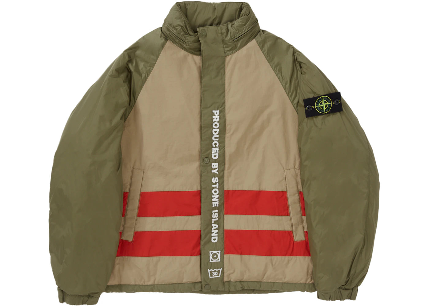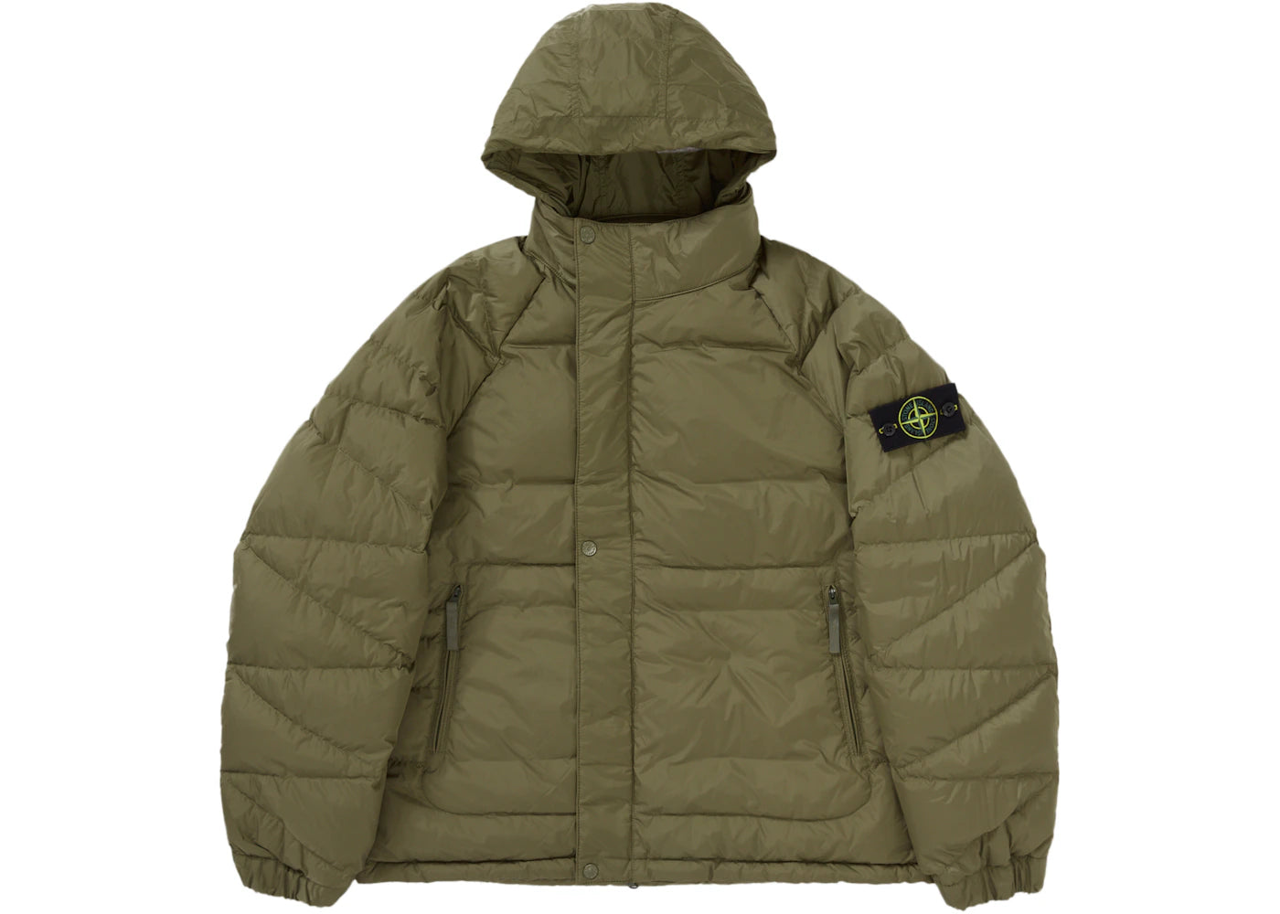 The Supreme Stone Island Reversible Down Puffer Jacket Olive is now available at Side Kicks!