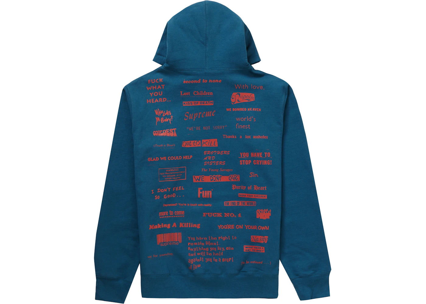 The Supreme Stop Crying Hooded Sweatshirt Marine Blue is now available at Side Kicks!