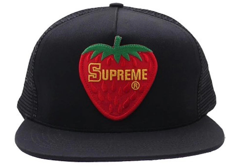 The Supreme Strawberry Mesh Back 5 Panel Black is now available at Side Kicks!