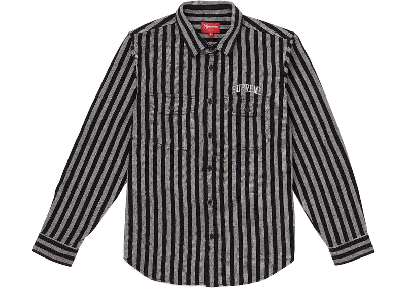 The Supreme Stripe Heavyweight Flannel Shirt Black is now available at Side Kicks!