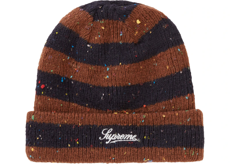 The Supreme Stripe Speckle Beanie Navy is now available at Side Kicks!