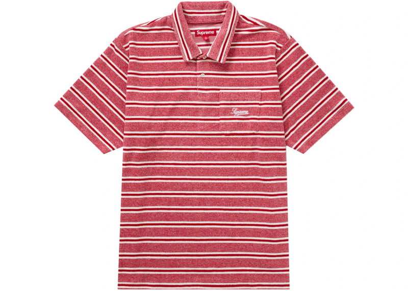 The Supreme Stripe Terry S/S Polo Red is now available at Side Kicks!