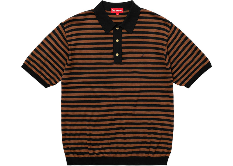 The Supreme Striped Knit Polo Brown is now available at Side Kicks!