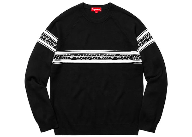 The Supreme Striped Raglan Sweater Black is now available at Side Kicks!