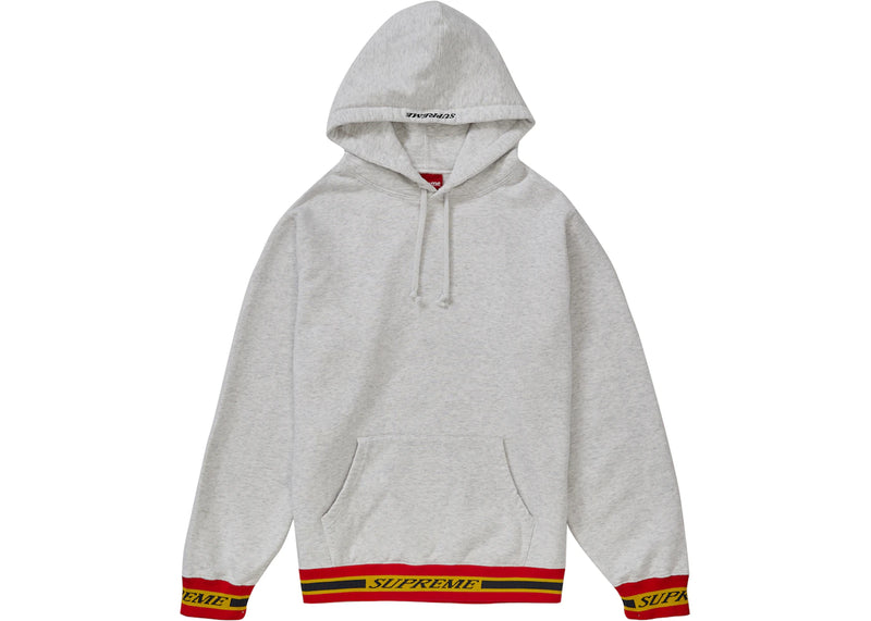 The Supreme Striped Rib Hooded Sweatshirt Ash Grey is now available at Side Kicks!